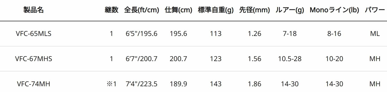 该系列目前共推出三款型号,分别为:VFC-65ML、SVFC-67MH、SVFC-74MH 三种型号覆盖了常用的钓组和钓法需求。