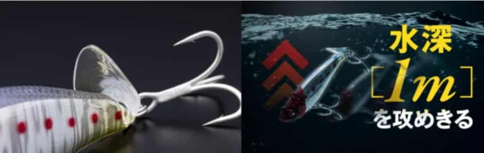 尾部舌板的铅笔这几年见的也不少了,vib还是第一次见。不过jackall的这款Tsukumo海鲈用饵的舌板应该主要是改变深度,扰流的作用不大。