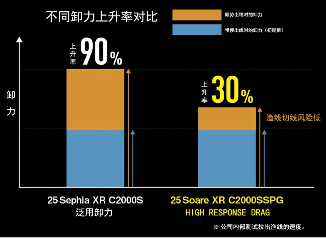比较收到精细操控的HIGH RESPONSE DRAG卸力系统也搭载进这一代,对于经常使用细线的根钓、竹筴鱼操作时卸力的输出更加平均稳定减少在与鱼的相持中断线的风险。