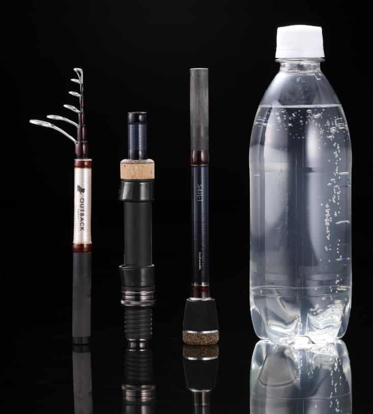 OUTBACK PUPPY 的设计为三件式,竿身、轮座和握柄位置为分离式,其分离后的收纳长度大概与一瓶矿泉水瓶差不多,收纳长度在20.5~22.5cm之间。(去掉竿帽为18cm)